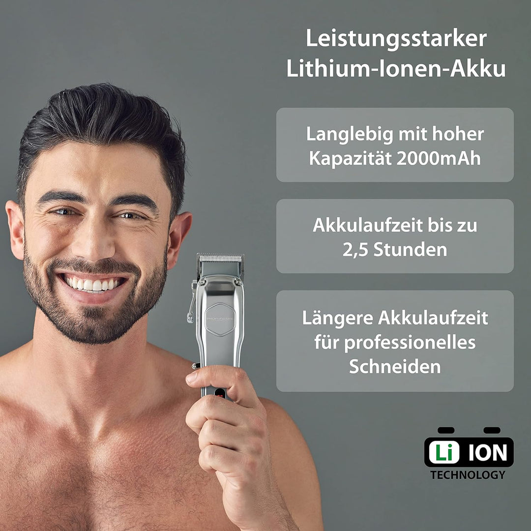 - Dank des Edelstahl-Präzisionsscherkopfs und der 3-stufigen Ausdünnfunktion wird jeder Haarschnitt zu einem wahren Meisterwerk