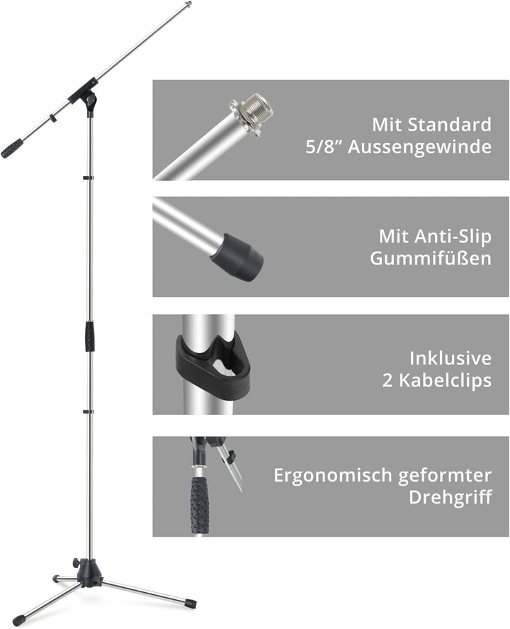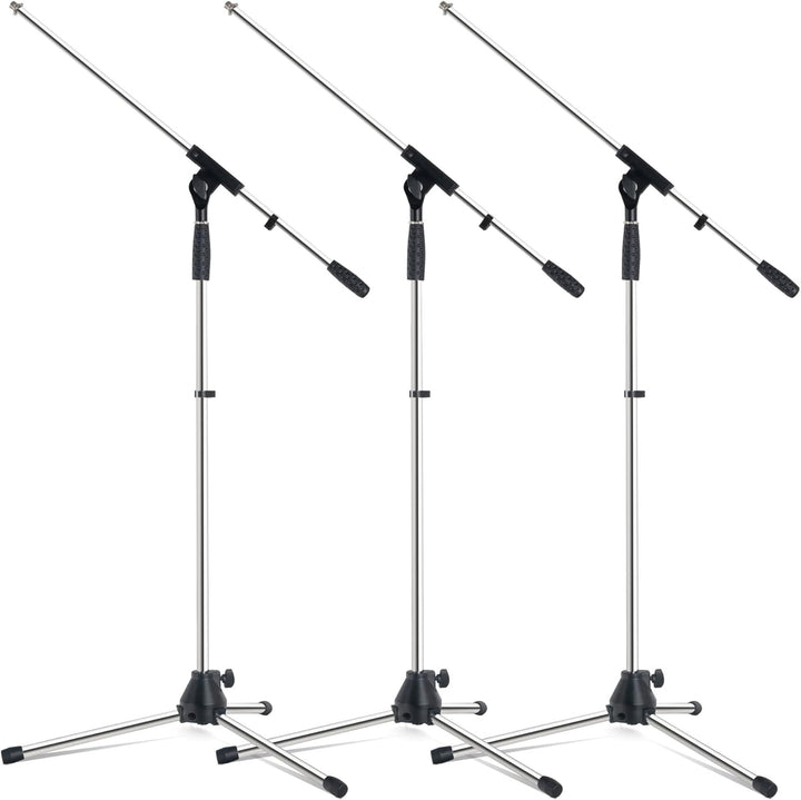 Pronomic Mikrofonständer MS-25C Pro 3x Set - dreibeinig mit Gummifüssen - Galgen in Länge und Neigun