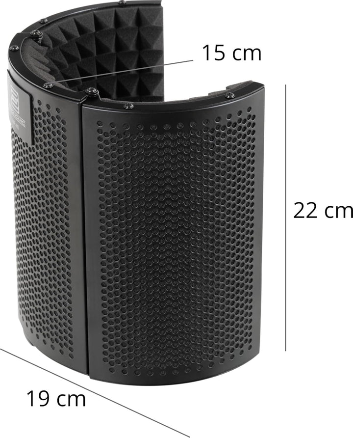 - 2 Gelenke für platzsparende Aufbewahrung, Absorber kann auf alle gängigen Mikrofonstative montiert werden