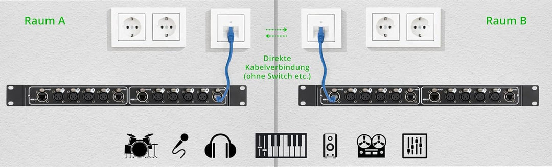 - Zur Übertragung analoger oder digitaler (DMX, AES/EBU) Signale über Netzwerkkabel
