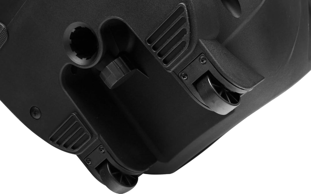 - schwarzes Kunststoffgehäuse, Metallgitter frontseitig, Stativflansch mit Befestigungsschraube