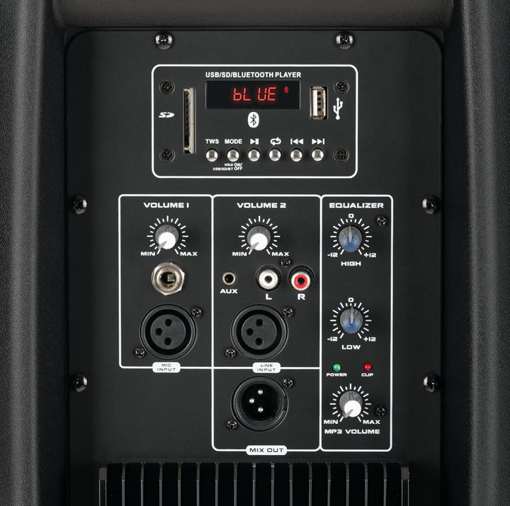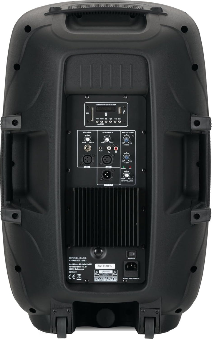- Aktive PA-Lautsprecherbox, integrierter USB/SD/Bluetooth MP3-Player, Leistung: 200 W RMS / 350 W Peak