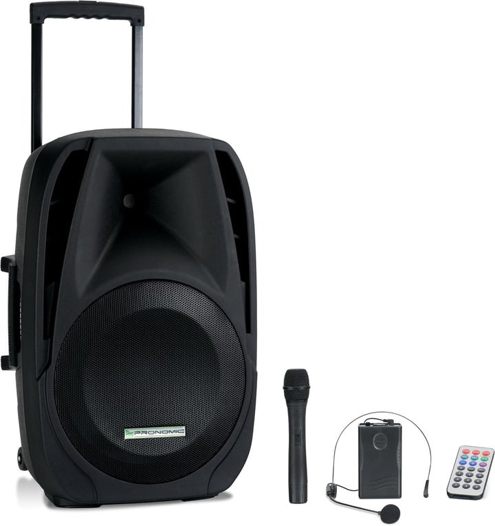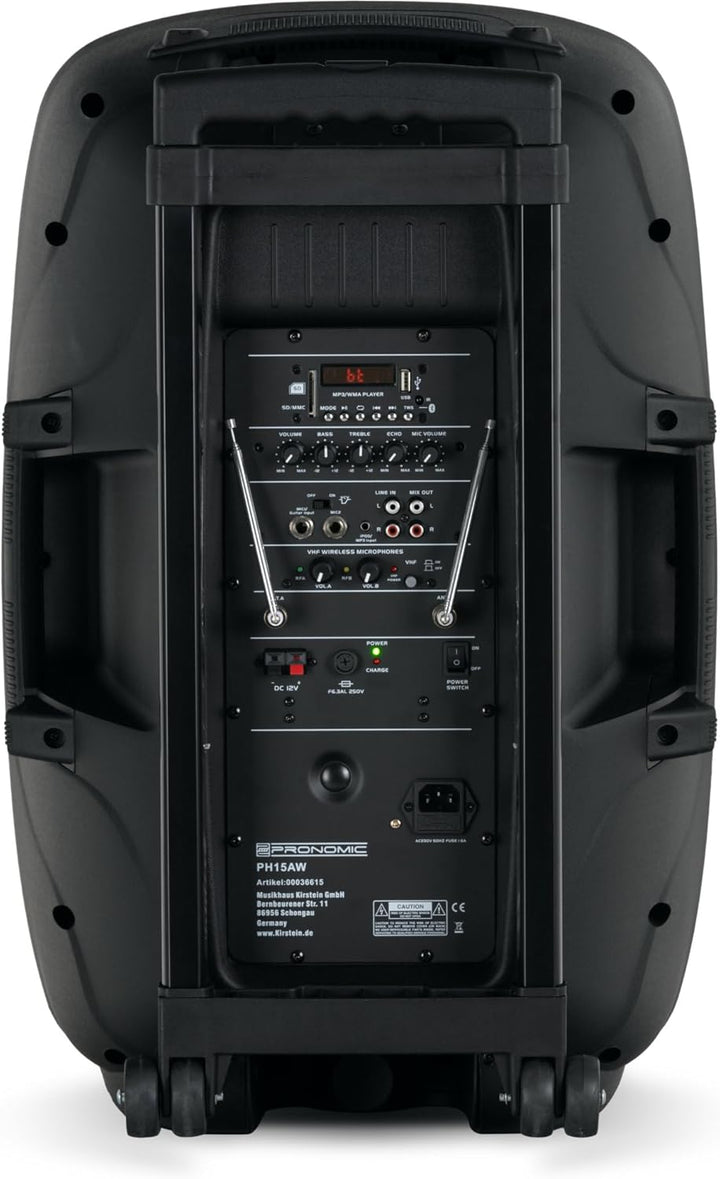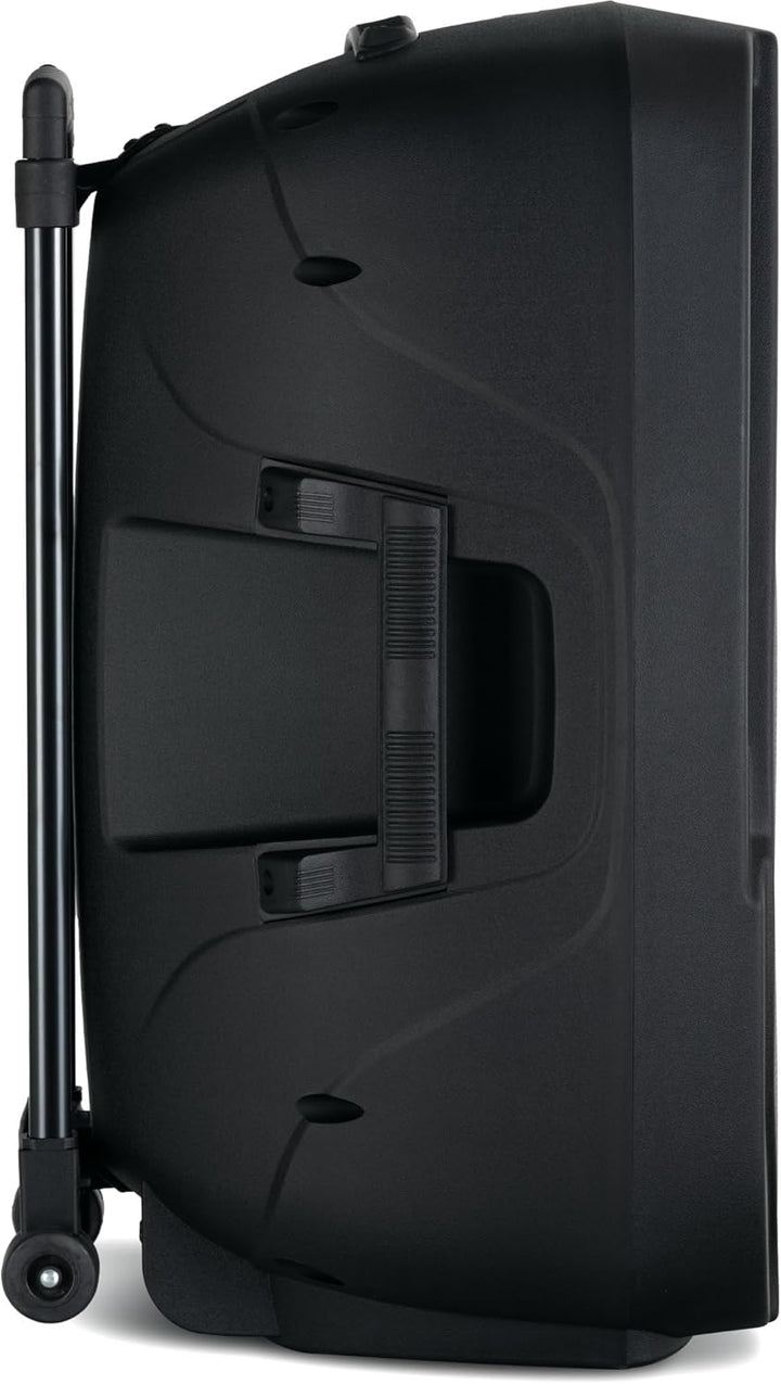 - Kompakte Akku-Aktivbox im Trolley-Format, 2-Wege-System mit 15" Speaker und Hochtontreiber, Leistung: 100 Watt (RMS)/200 Watt (Peak)