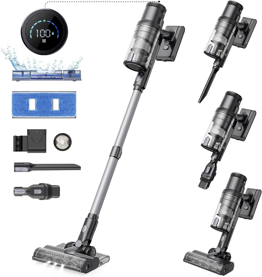- 【35KPa Starke Saugleistung】 Der Digitalmotor bietet eine Saugleistung von bis zu 35KPa, wodurch Staub und Schmutz mühelos entfernt werden. Der kabellose Staubsauger ist für Teppiche und andere Oberflächen geeignet.