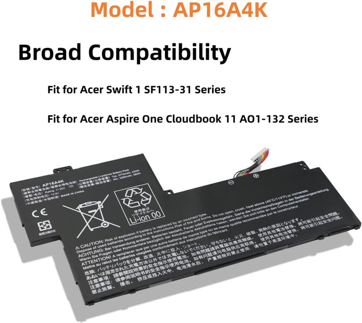 - 【Compatible with Laptop Models】for Acer Swift 1 SF113-31-P13P ,SF113-31-P1CP ,SF113-31-P7Z0 ,SF113-31-P3BG ,SF113-31-P4MS ,SF113-31-P5WW ,SF113-31-N16Q9 ,SF113-31-AS3EA ,SF113-31-N17P2,Aspire One Cloudbook 11 AO1-132 ,AO1-132-C3T3 ,AO1-132-C0QL Series