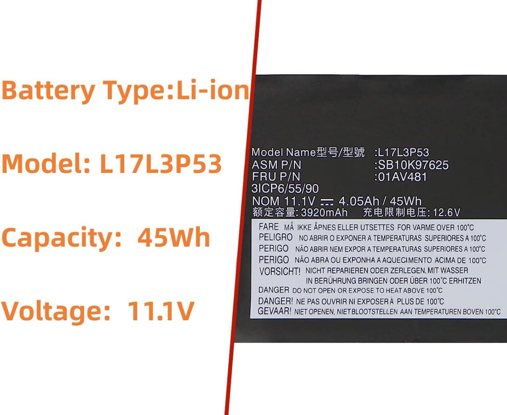 - 【Replacement Part Number】L17L3P53 01AV481 SB10K97625 01AV482 01AV483 L17C3P53 L17M3P55 SB10K97626 SB10K97627