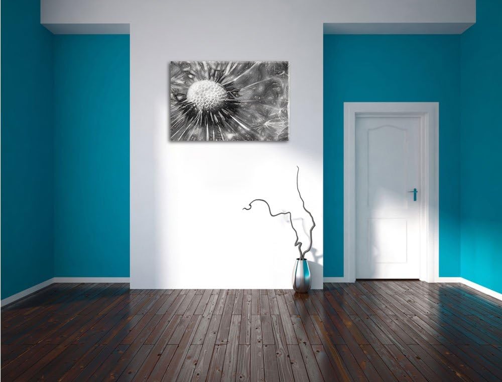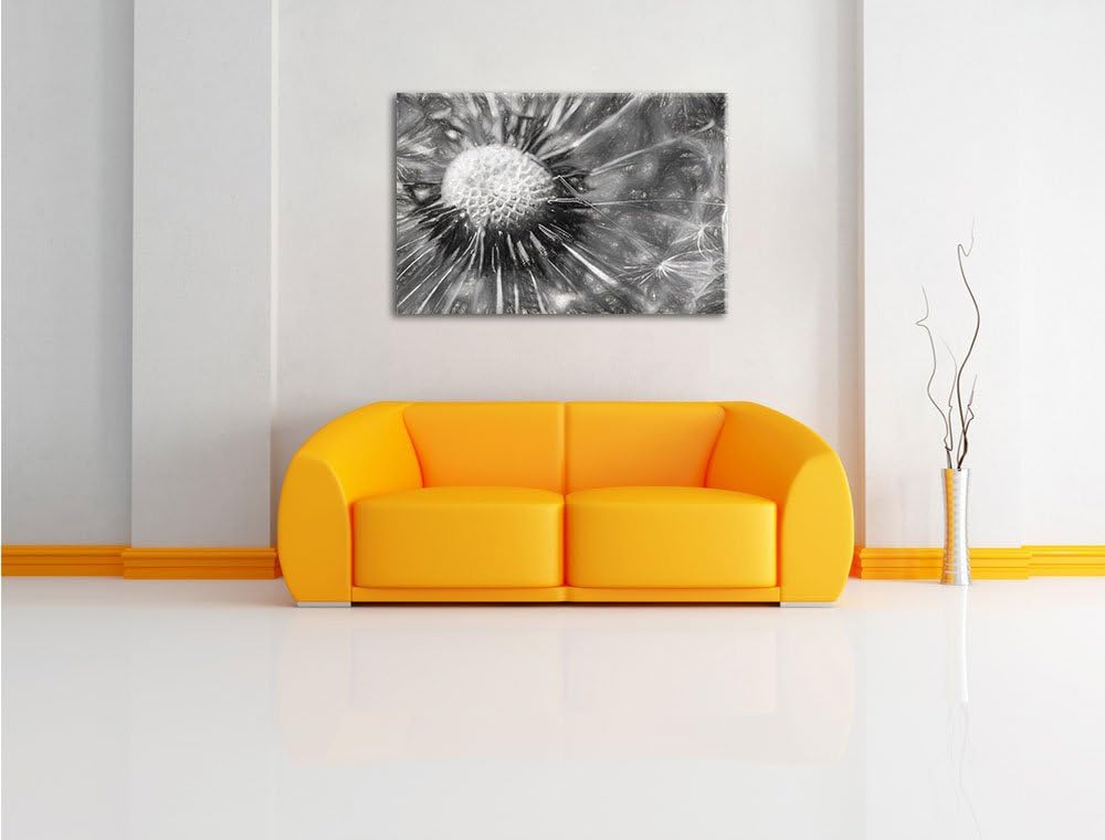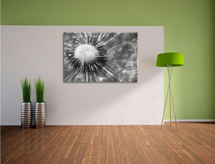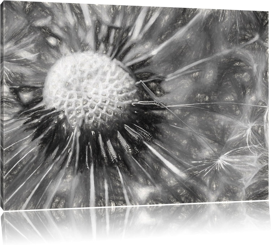 Pusteblume Kohle Effekt, Format: 100x70 auf Leinwand, XXL riesige Bilder fertig gerahmt mit Keilrahm
