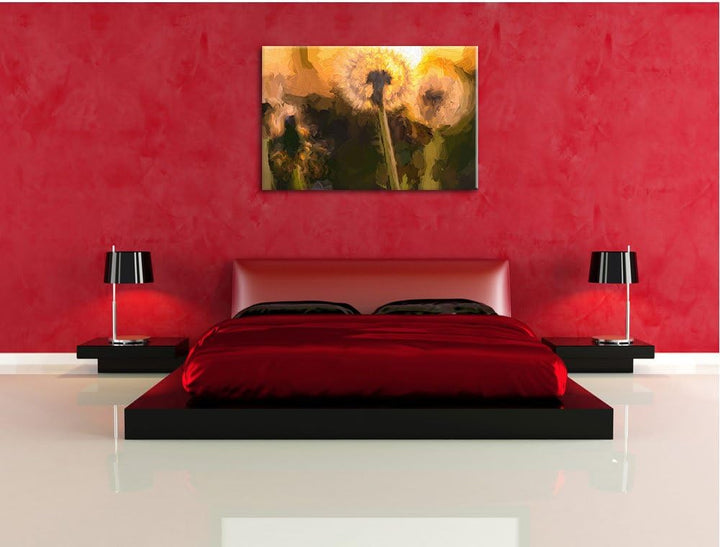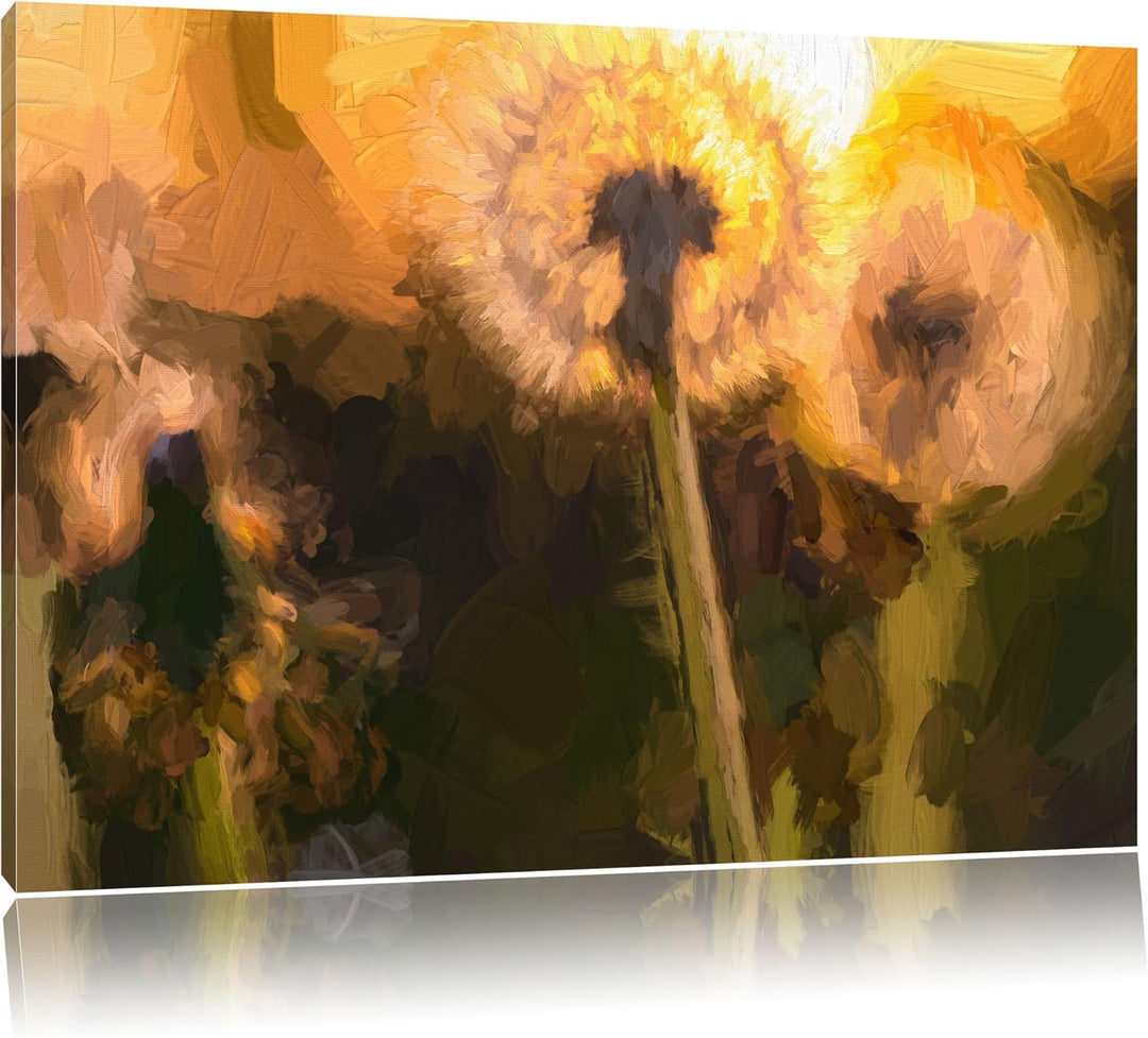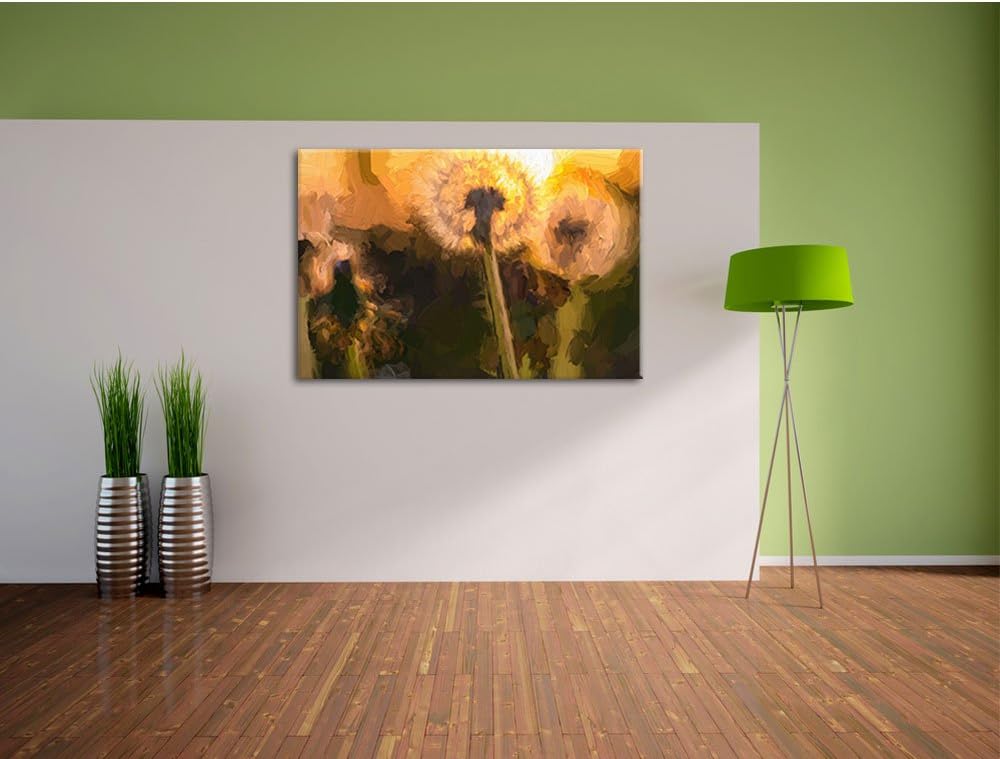Pusteblume Pinsel Effekt, Format: 100x70 auf Leinwand, XXL riesige Bilder fertig gerahmt mit Keilrah