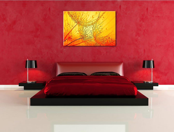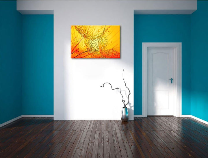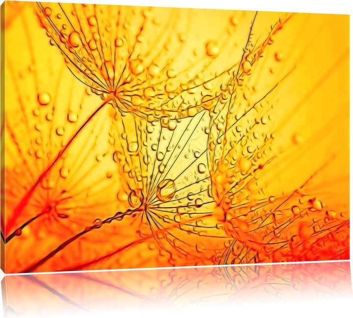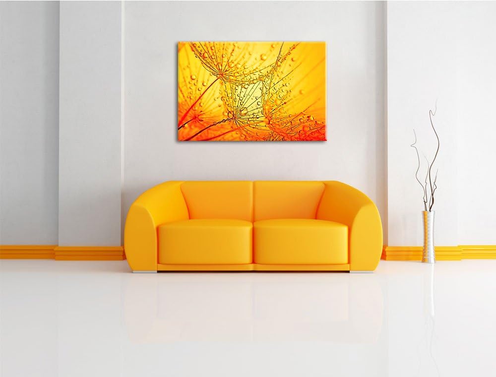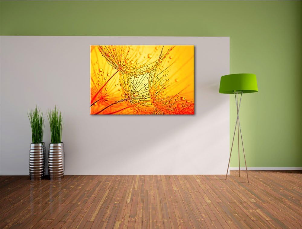 Pusteblumen Schirmflieger mit Tau Deluxe Format: 100x70 cm auf Leinwand, XXL riesige Bilder fertig g