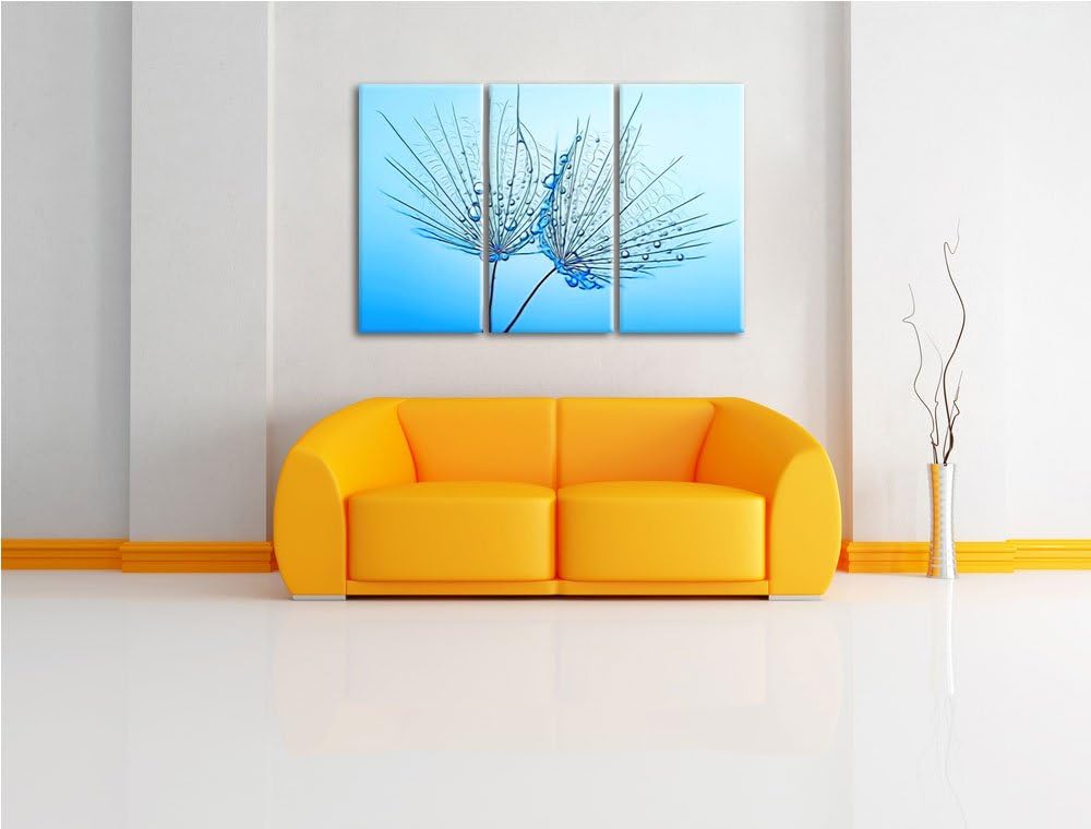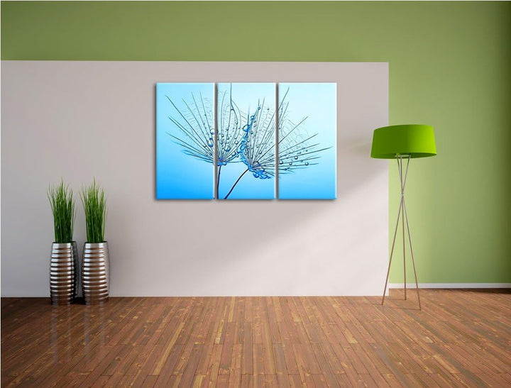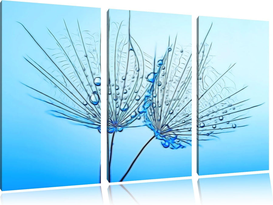 Pusteblumen mit Tautropfen Spezial 3-Teiler Leinwandbild 120x80 Bild auf Leinwand, XXL riesige Bilde