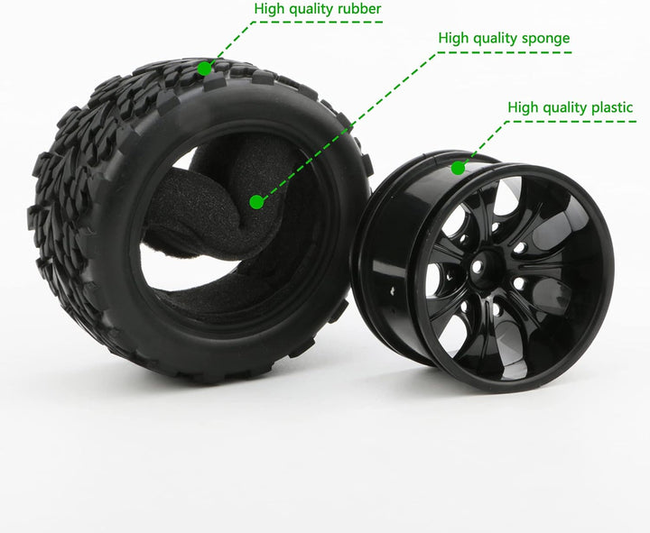 - Hinweis: 1: Die Reifen sind nicht auf Felgen geklebt, Sie müssen sie selbst zusammenbauen und zusammenkleben. 2: 3M171 Sofortkleber (nicht im Lieferumfang enthalten) könnte besser zusammenkleben. Sie können separat kaufen.
