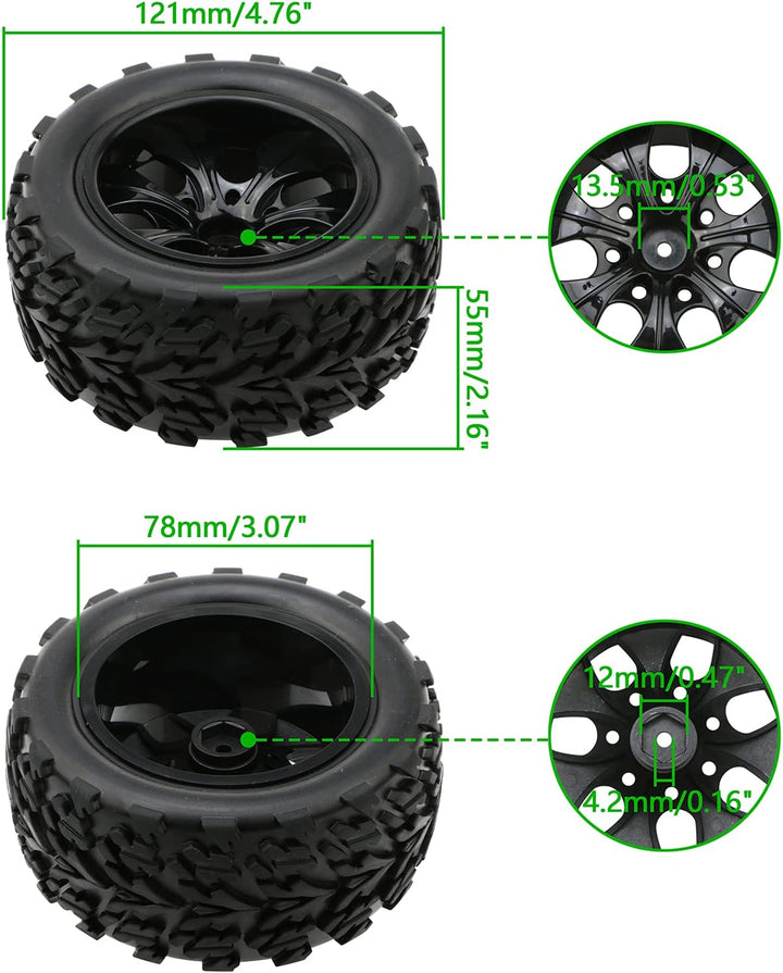 - Geeignet für: Die meisten Marken im Massstab 1:10, 12 mm Sechskant-Geländewagen, für Monstertruck usw.