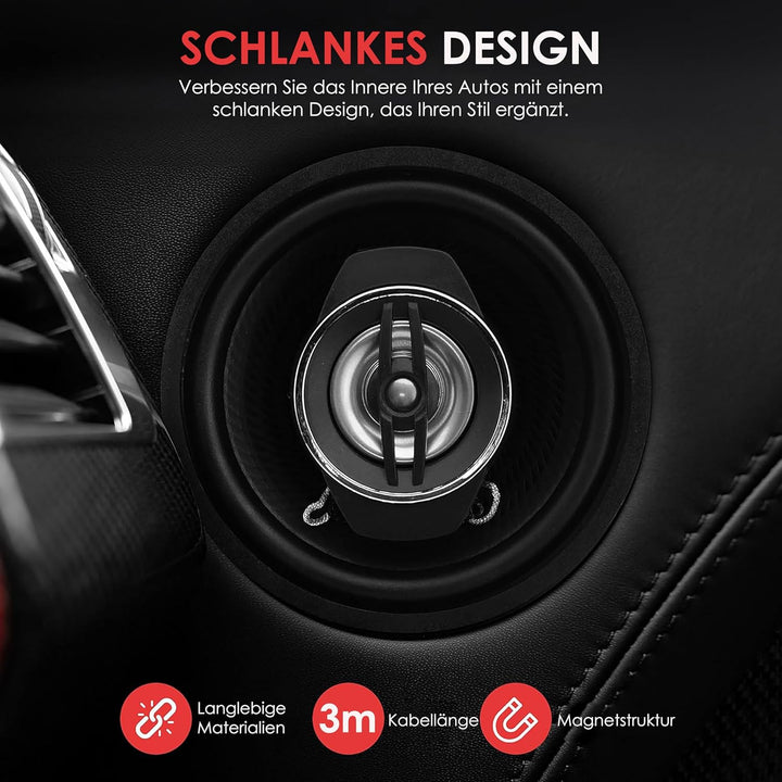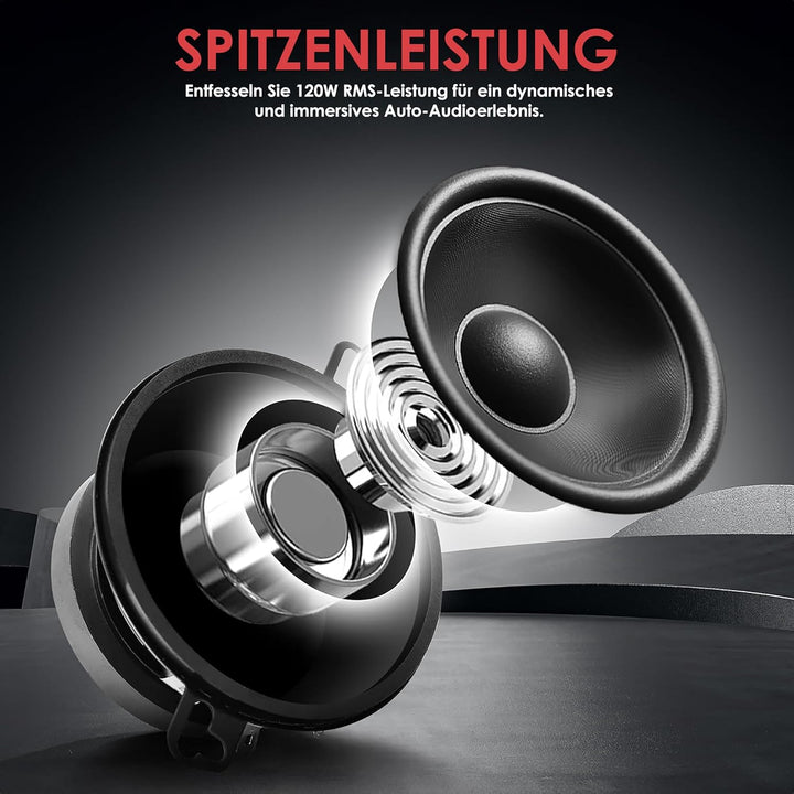 - 8,8 CM (3,5") 2-WEGE KOAXIAL LAUTSPRECHER: Das 2-Wege Koaxial Lautsprecher System hat die Masse 8,8 cm x 8,8 cm x 5,1 cm (3,46" x 3,46" x 2,01"). Die Auto Lautsprecher Boxen verfügen über eine robuste Poly-Injection-Membran, die verzerrungsfreien,