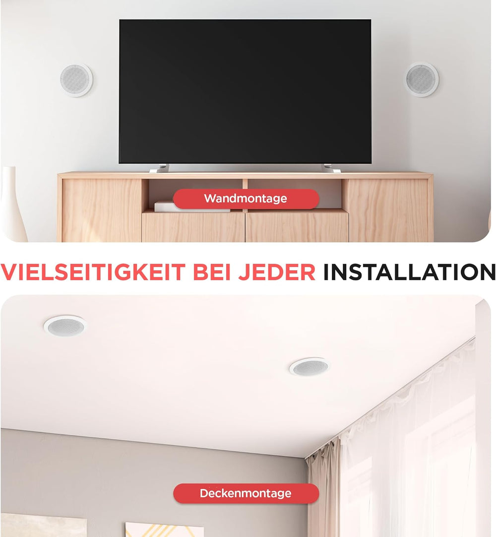 - FLUSH MOUNT DESIGN: Ein Paar Midbass-Stereolautsprecher im Unterputz-Design für die einfache und einfache Installation in der Wand / Decke. Das Produkt verfügt über eine 1-Zoll-Hochtemperatur Schwingspule zur Erzeugung von kräftigem, sattem Klang