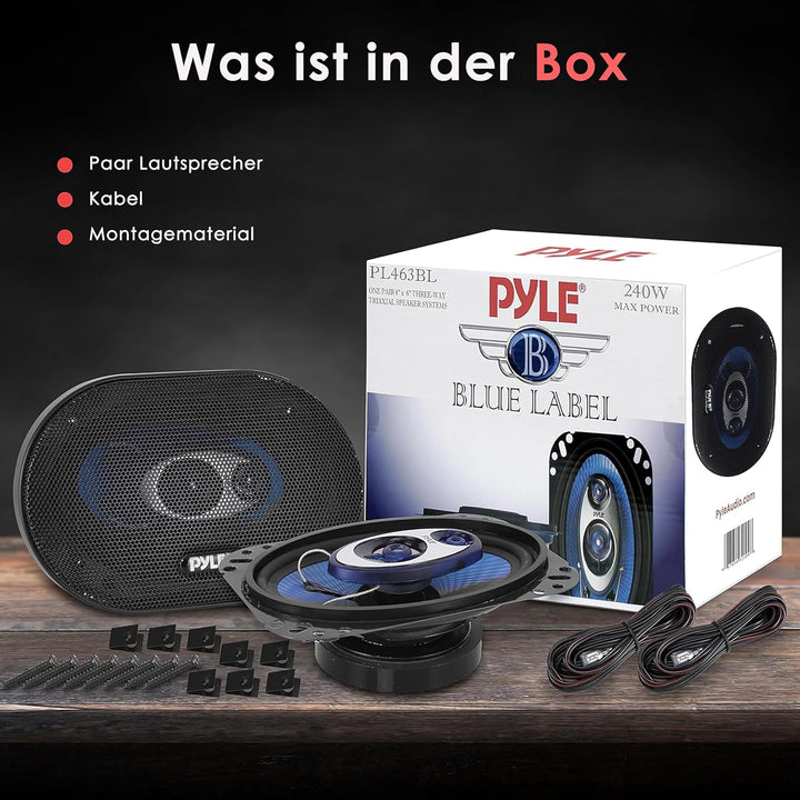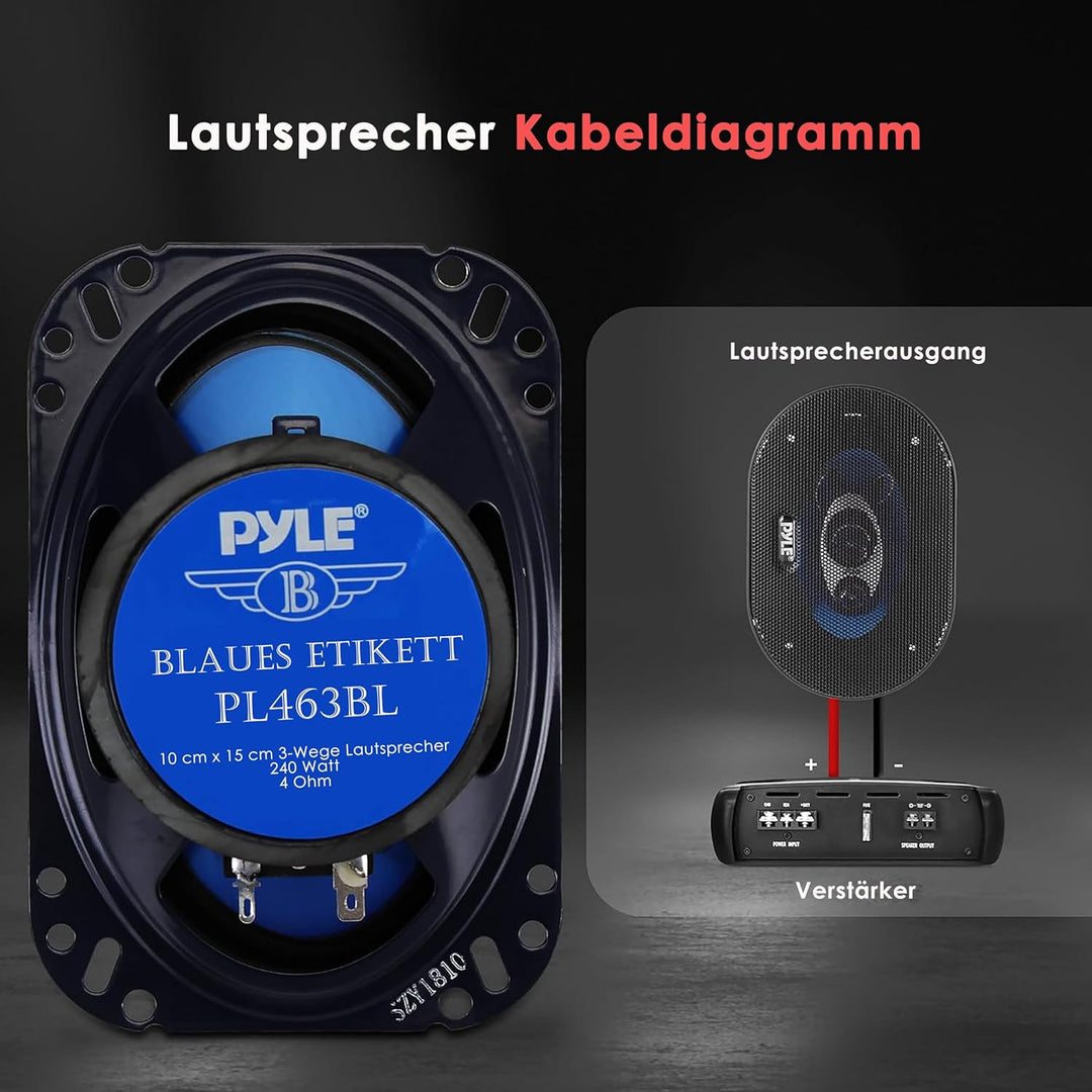 - Ein Paar 4 x 6 Zoll Drei-Wege-Triaxial-Lautsprecher-Systeme, Belastbarkeit: 120 Watt RMS / 240 Watt max
