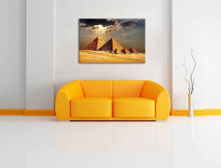 Pyramiden von Gizeh im Sonnenlicht Format: 100x70 auf Leinwand, XXL riesige Bilder fertig gerahmt mi