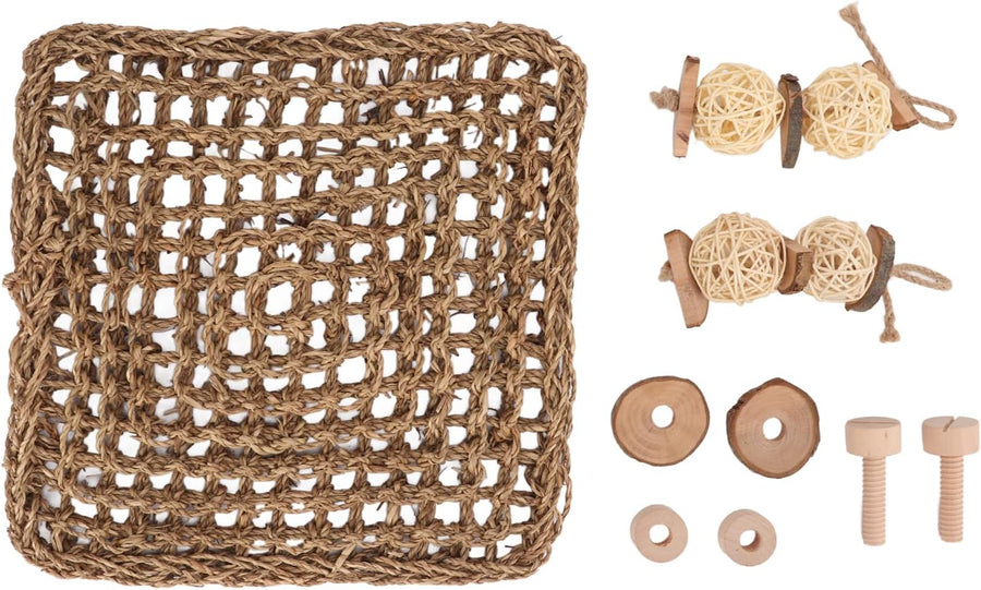 - 【Käfigdekoration】 Mit Holzschrauben und Muttern kann sie im Käfig befestigt werden, diese Kaninchen-Seegrasmatte ist nicht nur für Haustiere zum Kauen und Spielen geeignet, sondern kann auch als Käfigdekoration verwendet werden.