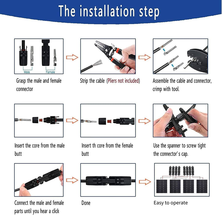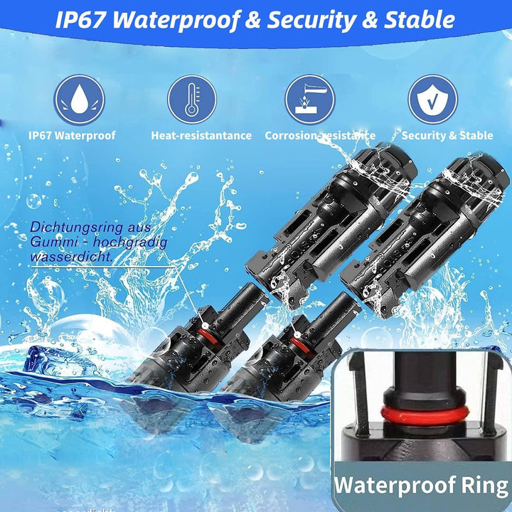 • ✅Solarpanel-Anschlüsse aus PPO + PA-Material, Leiterstift aus verzinntem Kupfer. Ausgezeichnete Alterungsbeständigkeit und UV-Beständigkeit, überlebte Regen, starke Winde und Schnee für mehr als viele Jahre!