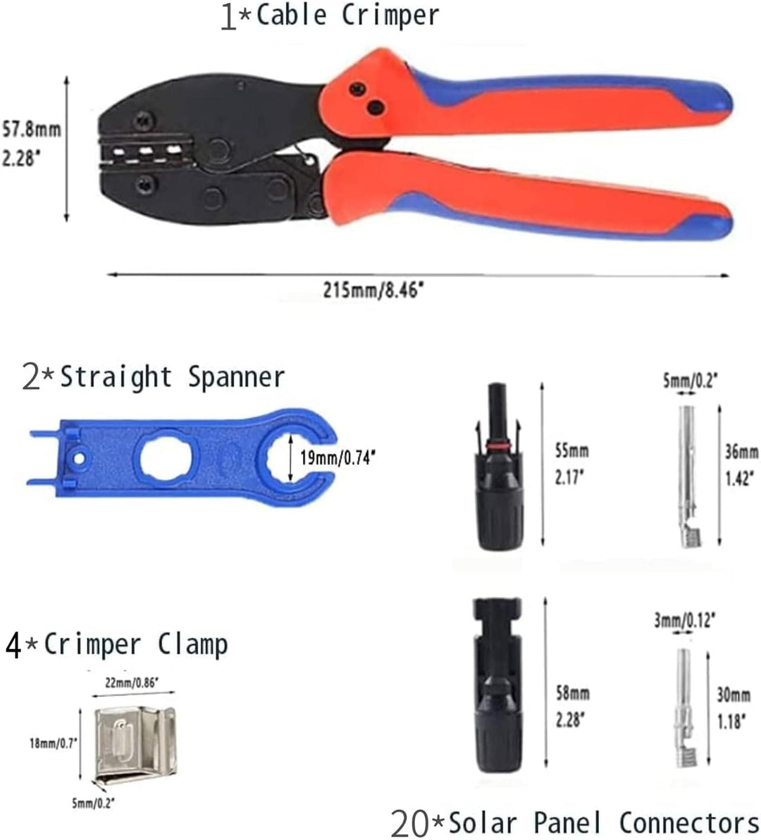 - 💕【Werkzeugsatz für Solarpanel-Kabel】: Praktischer Crimpwerkzeugsatz für Solarkabel, geeignet für 2,5/4,0/6,0 mm² Solarkabelstecker. Der Solar-Crimpwerkzeugsatz ist ein ideales Geschenk für Mechaniker, Heimwerker, Heimwerker und Ingenieure