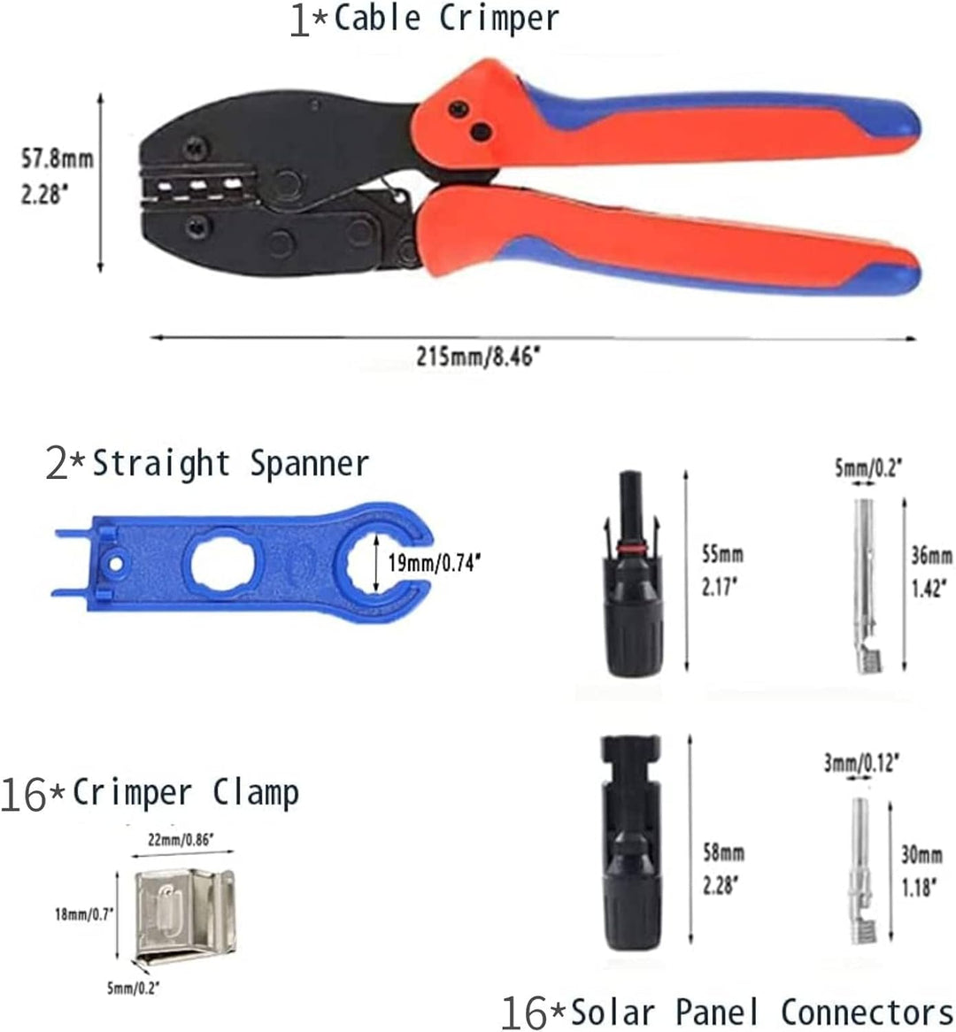 QeeHeng Solar Crimpzange Kit für 2.5/4.0/6.0mm², 1 Stück Solarpanel PV Kabel Crimpzange +16 Paar Mal