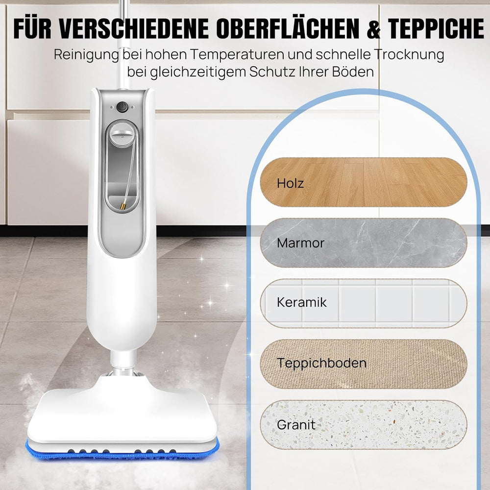 - 【Effiziente Reinigung】Der Dampfreiniger ist eine perfekte Lösung für die natürliche Tiefenreinigung, gründlicher Reinigung bis zu 99,999% der Viren und Bakterien, halten Sie Ihre Böden ohne chemische Rückstände sauber und entfernen Sie auch