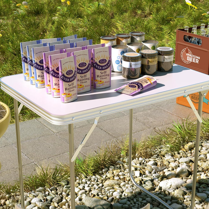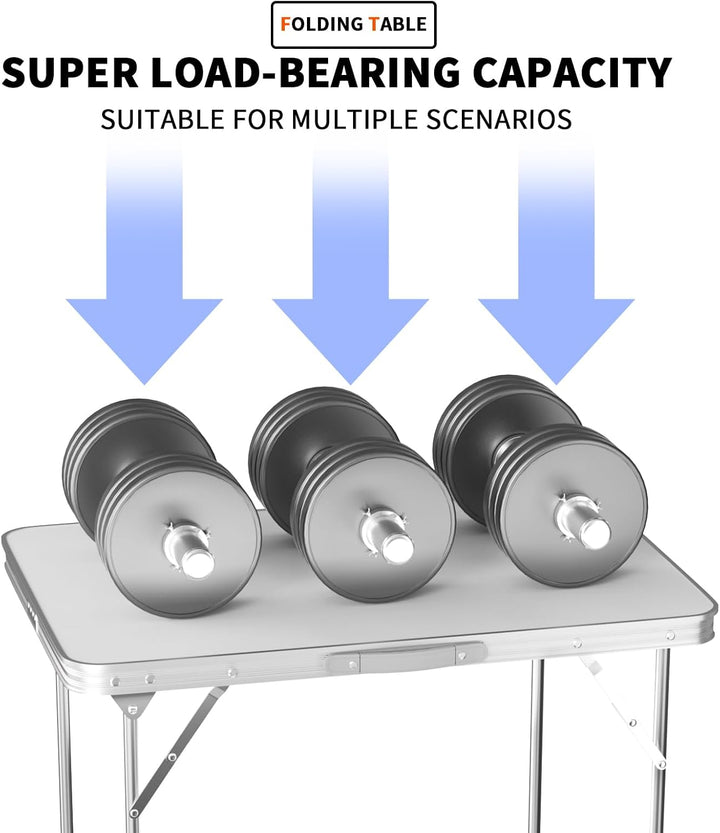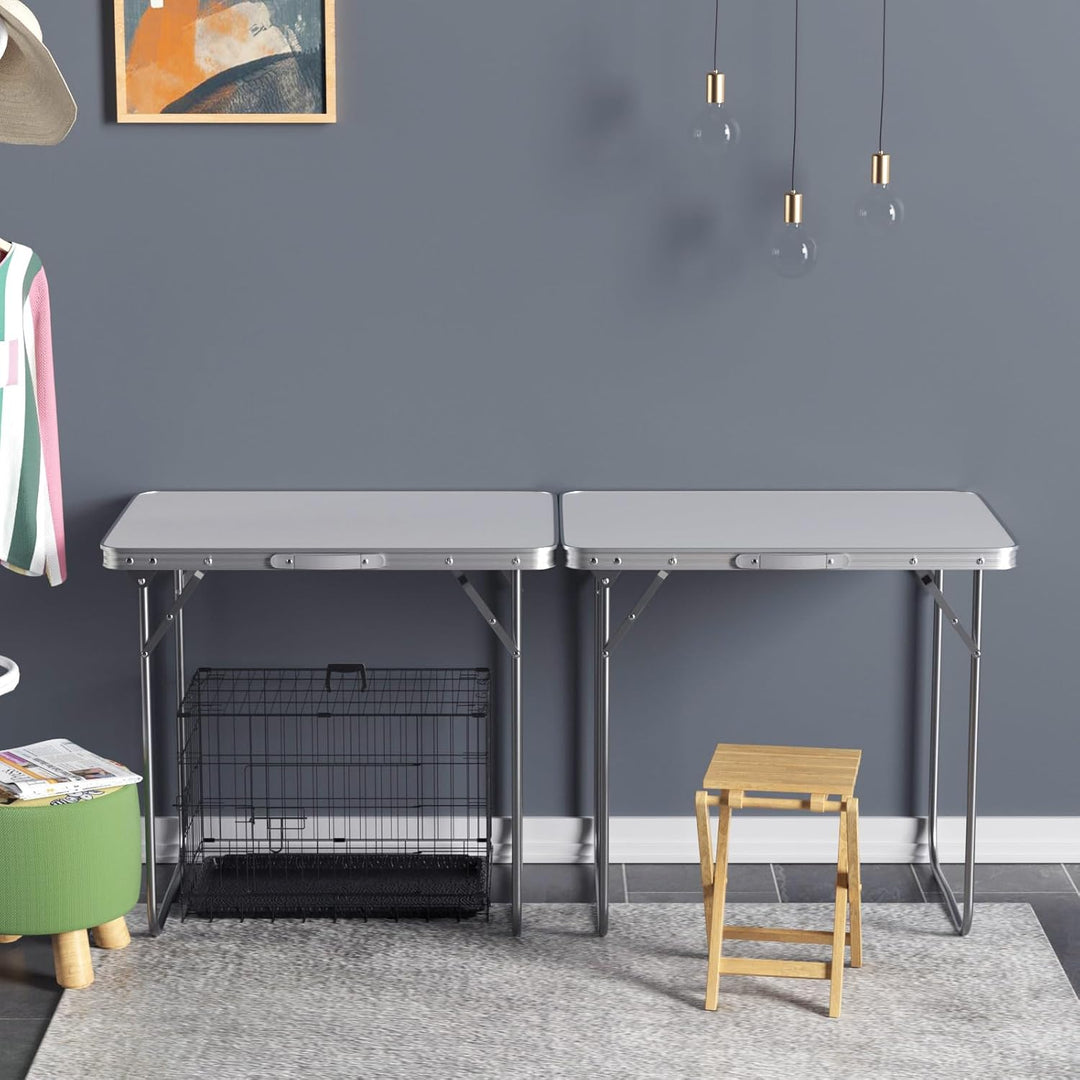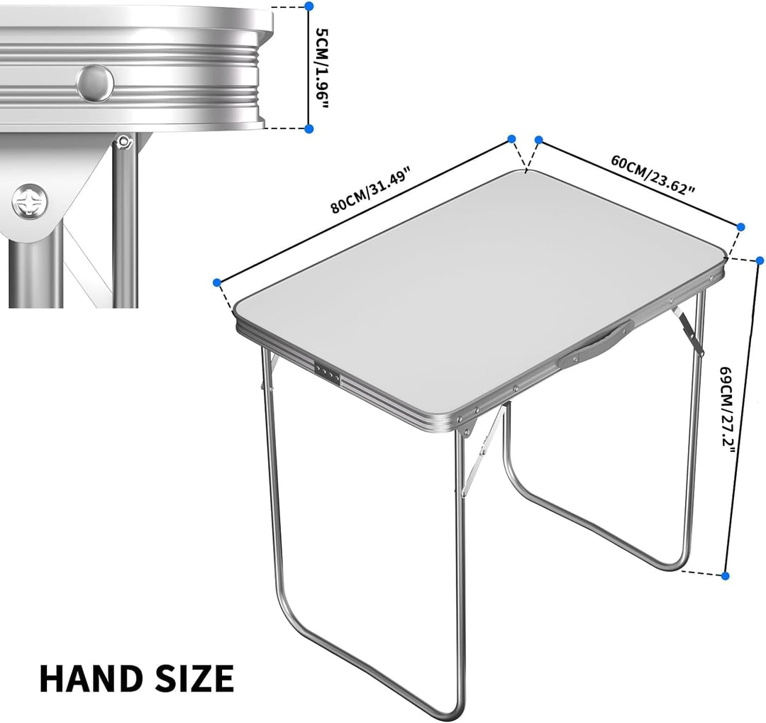 - Aluminium-Klapptisch: Dieser Klapptisch besteht aus einer leichten Aluminiumlegierung und MDF-Platte. Er ist kompakt und langlebig.