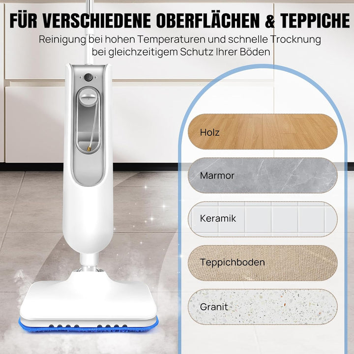 - - Effiziente Reinigung: Dampfmopp kommt mit waschbaren und hochsaugfähigen Mikrofaser-Dampfmopppads und der 400 ml grossem Fassungsvermögen Wassertank, kann lange Zeit ohne wiederholte Wasserzugabe gereinigt werden, Bietet viel Komfort, um Ihr gesamtes