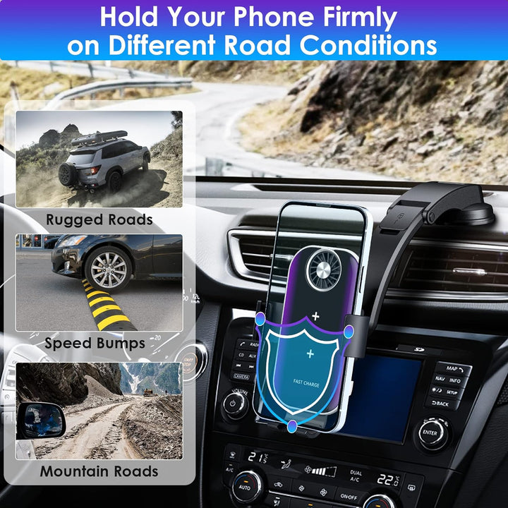 - Smart Auto Clamping- Handyhalterung Auto Mit Ladefunktion kommt mit leiser Elektromotor machen die automatisch kontrollierten Arme den Ladevorgang intelligent. Drücken Sie die Release -Taste des drahtlosen Mobilteilshalters und öffnen Sie Ihr Telefon