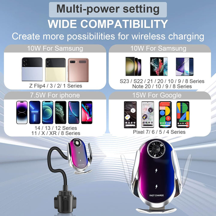 - [Eingebautes Wärmeableitungs System] - Das Induktion Doppelspule Cup Holder Kabellose Kfz-Ladegeräte auto über einen eingebauten Lüfter, der eine hervorragende Temperaturregelung bietet. Auch wenn Sie dieses Ladegerät für