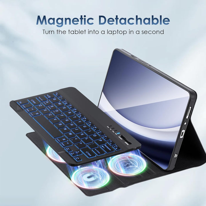 - Magnetisch Abnehmbare Tastatur - Durch das magnetisch abnehmbare kabellose Tastaturdesign können Sie die Tastatur jederzeit problemlos entfernen. Drei Dellen auf dem Gehäuse zum Aufstellen des Tablets in drei verschiedene Betrachtungswinkel im