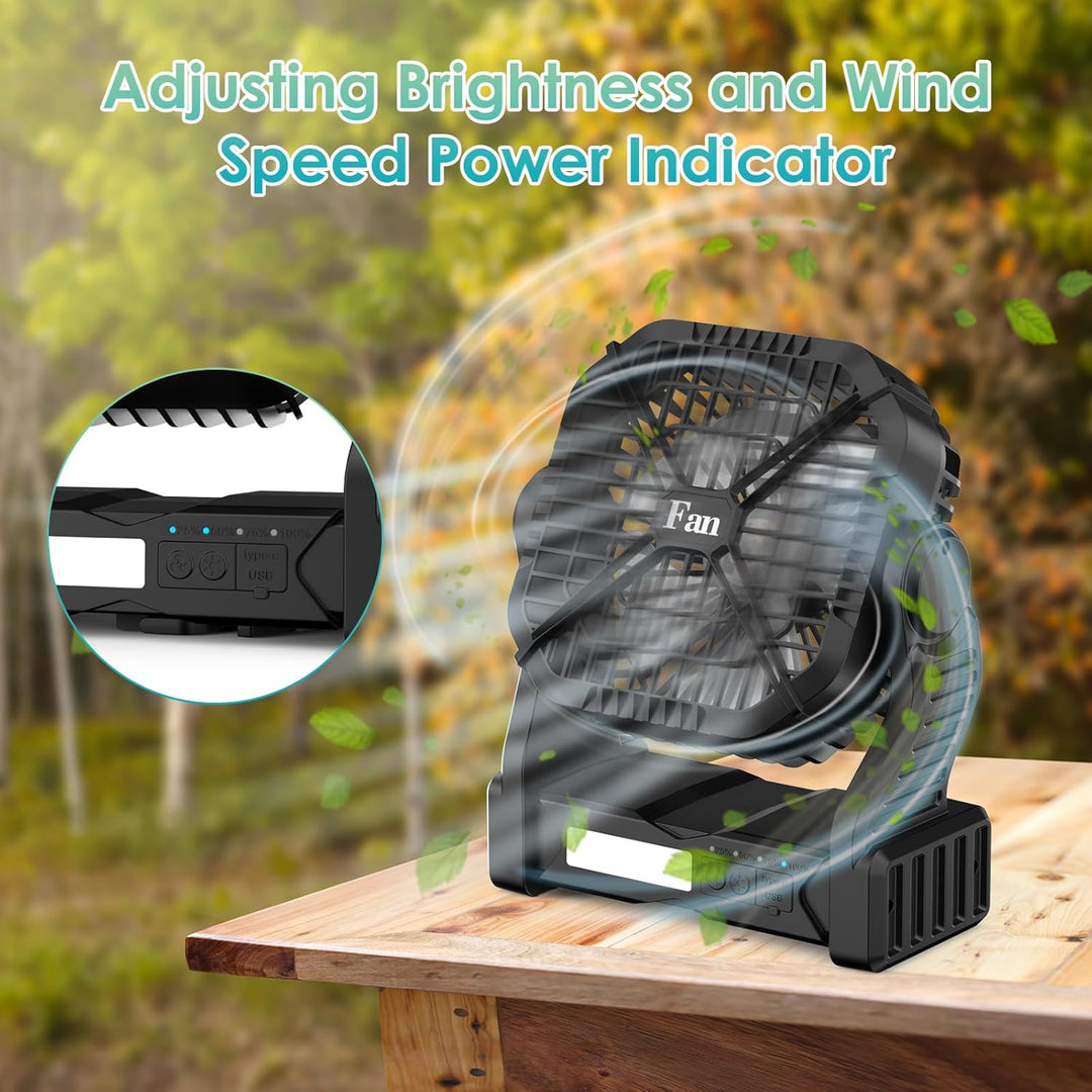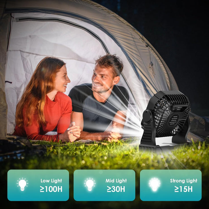 - 【3 IN 1 Camping Ventilator Licht】Dieser Outdoor-Camping-Ventilator für das Zelt hat mehrere Funktionen: Er ist ein leistungsstarker Ventilator, eine lumenstarke Camping-Laterne und eine Notstromversorgung. Bringt Ihnen nicht nur eine komfortable,