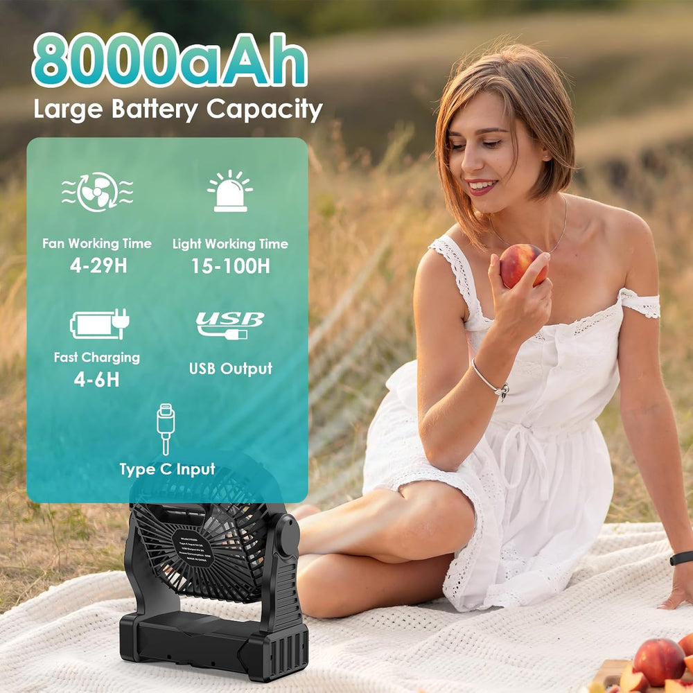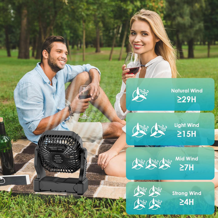 - 【8000mAh Lange Batterielebensdauer】 Wenn es als batteriebetriebener Ventilator für Camping verwendet wird, kann es ununterbrochen für bis zu 30 Stunden arbeiten, so dass Sie die Kühle für eine lange Zeit ohne häufiges Aufladen geniessen können.