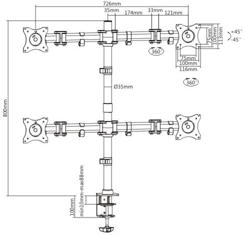 - Inkl. Montage-Set und Schrauben für die Befestigung der Monitore. Die Halterung kann auch mittels Tischlochmontage befestigt werden