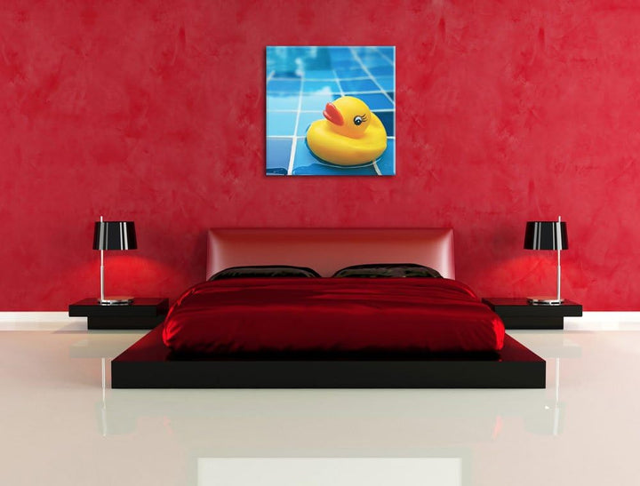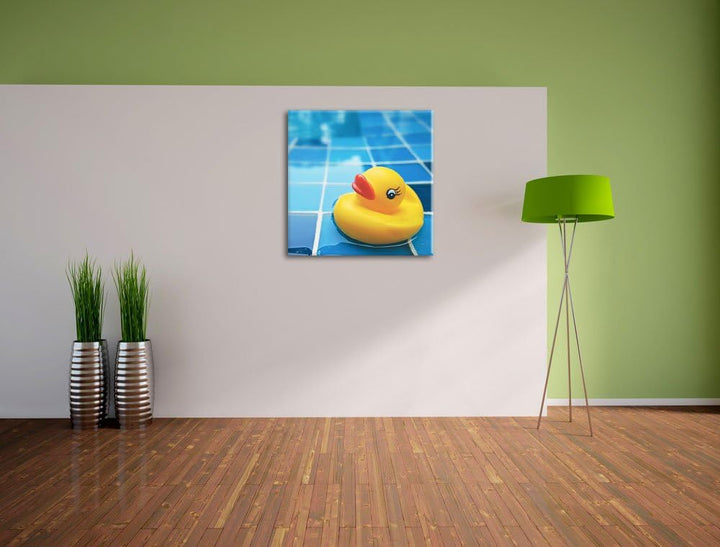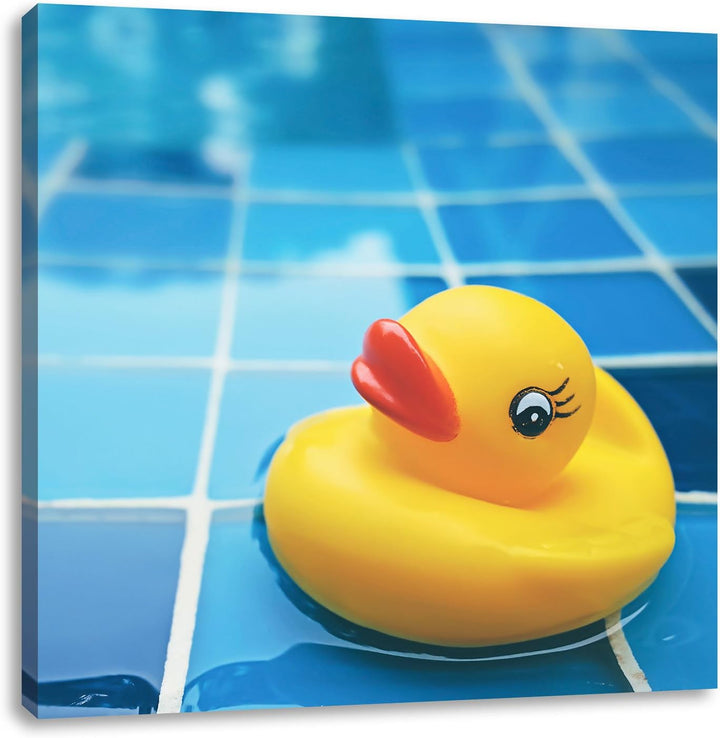 Quietsche Ente im Bad, Format: 70x70 auf Leinwand, XXL riesige Bilder fertig gerahmt mit Keilrahmen,