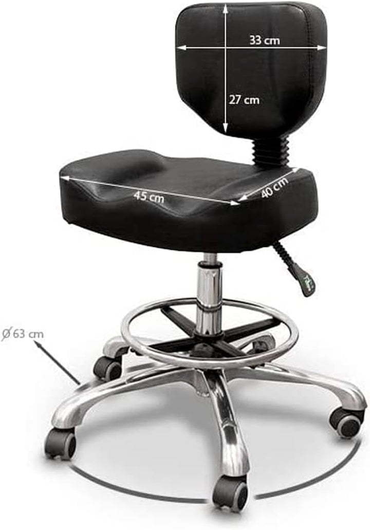 • Dieses Hockermodell zeichnet sich durch ein hydraulisches Hubsystem und eine verchromte Struktur aus. Darüber hinaus verfügt er über Sitz und Rückenlehne mit Kunstleder und rutschfest.