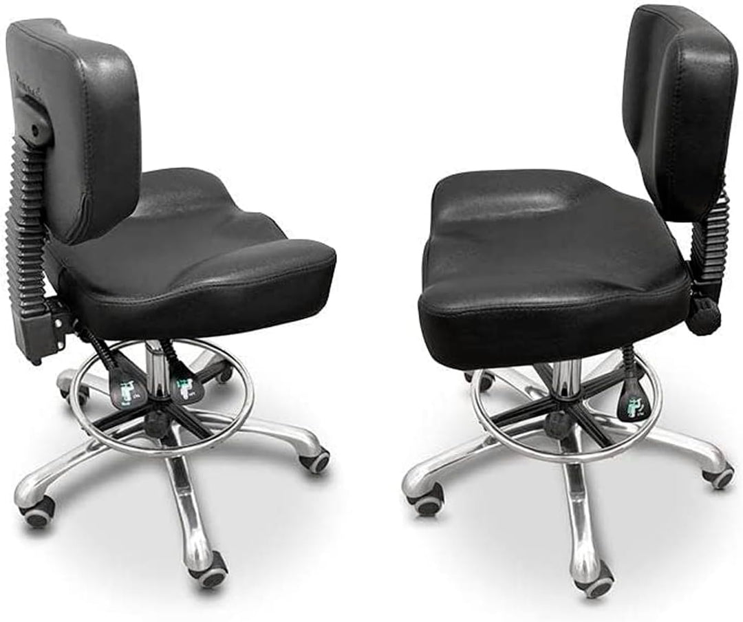 QUIRUMED Hydraulischer Hocker mit Rückenlehne, Sitz und Fussstütze, Schwarz, Polsterung aus Kunstled