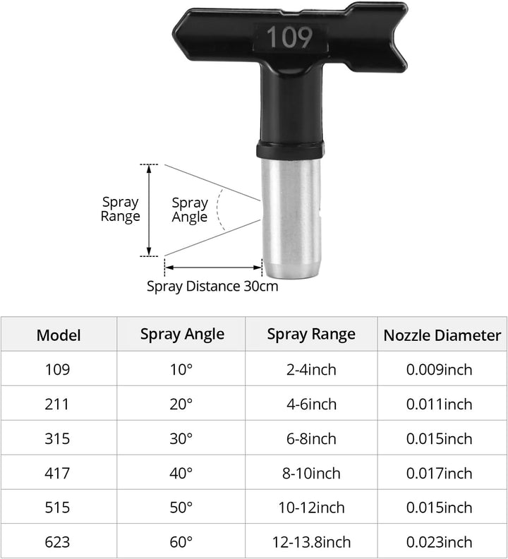 - Vielseitiges Düsenset: Enthält 6 Hartmetall-Sprühspitzen in verschiedenen Grössen (109, 211, 315, 417, 515, 623) für präzise Farbanwendungen und 2 robuste Düsen Sitz.