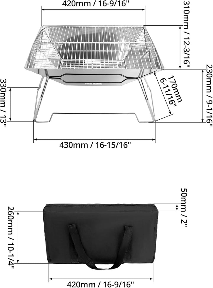 • Tragbar und leicht: Die Lagerfeuerstelle misst im aufgeklappten Zustand 42 x 33 x 23 cm und im zusammengeklappten Zustand 42 x 33 x 5 cm und wiegt nur 1,95 kg. Wird mit einer Tragetasche zur einfachen Aufbewahrung geliefert.