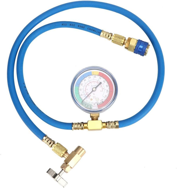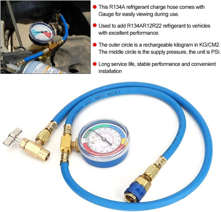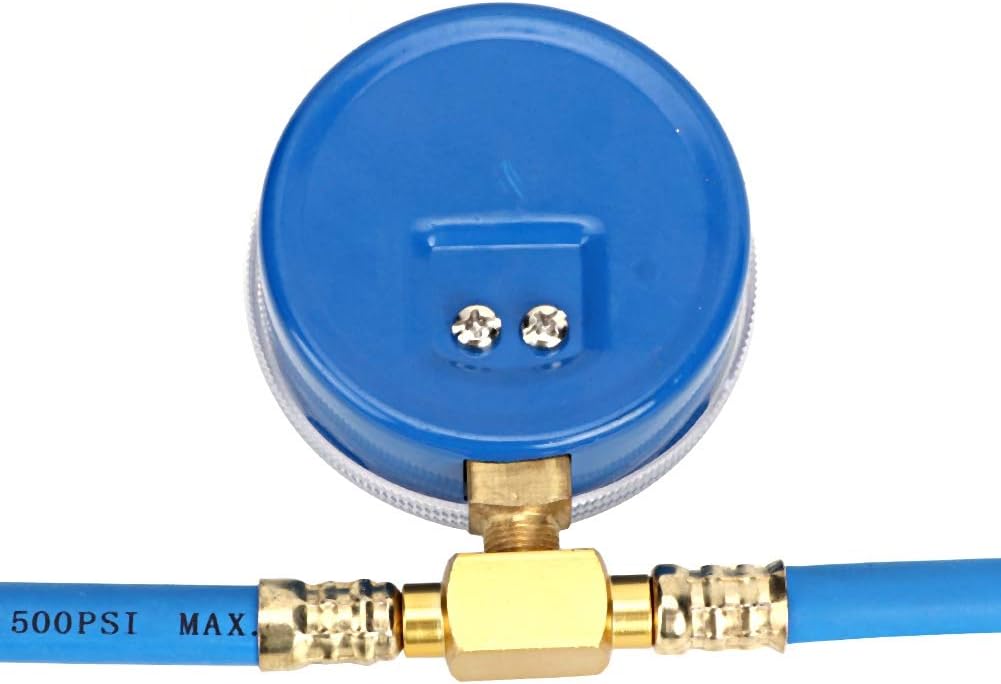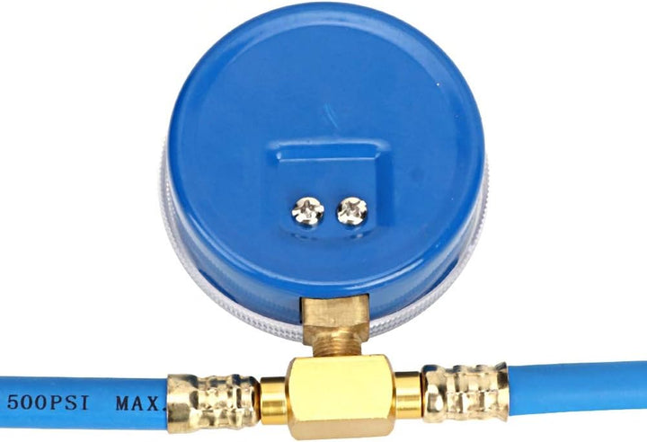 - Dieser Kältemittelfüllschlauch R134A wird mit einem Messgerät geliefert, das während des Gebrauchs leicht angezeigt werden kann.