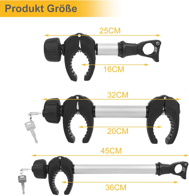 - 【Länge 】Die Gesamtlänge der abschliessbaren Rahmenhalterungen beträgt ca. 25 cm; 32 cm; 45 cm, und die Länge der Verbindung zwischen Rahmen und Lenkerkopf beträgt ca. 16 cm; 20 cm; 30 cm