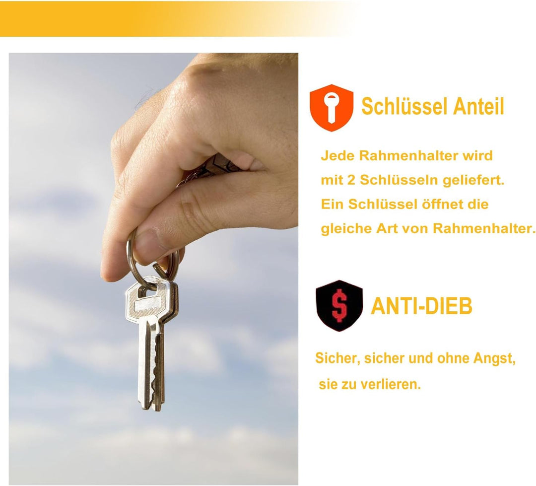 - 【Was ist in der Box】 Rahmenhalter kurz 25cm x 1,Rahmenhalter kurz 32cm x 1,Rahmenhalter kurz 45cm x 1, Schlossschlüssel x 6 (Tipp: Der Schlüssel passt für alle 3 Grössen unserer Fahrradträger.)