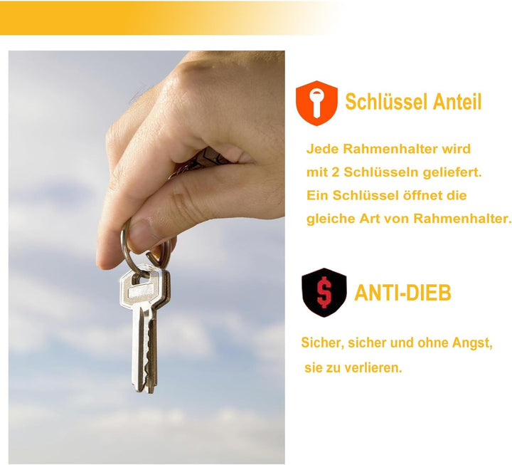 - 【Kompatibilität 】Dieser abschliessbare Fahrradträger ist für fast alle Fahrräder geeignet, zur Sicherung von Fahrrädern an U-Bügelrohre Durchmesser, sowie an übergrossen und Y-Rahmen