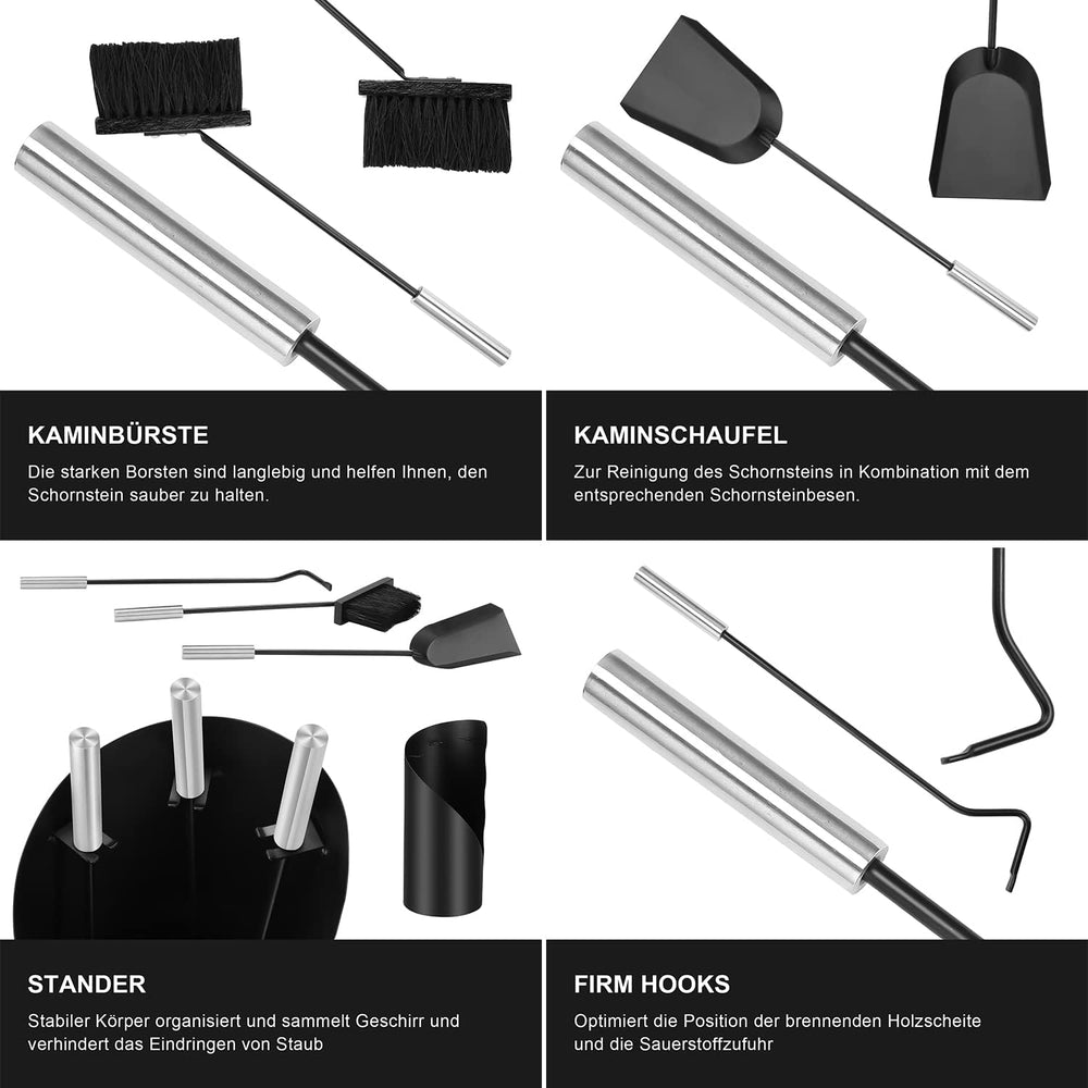 - 🌡️KAMINBESTECKSET - Material:Edelstahl+Eisen, Farbe:Schwarz(Eisen mit Pulverbehandlung oberfläche), Nettogewicht:ca. 2.5kg. Gesamtproduktgrösse:Ø20 x 50cm.