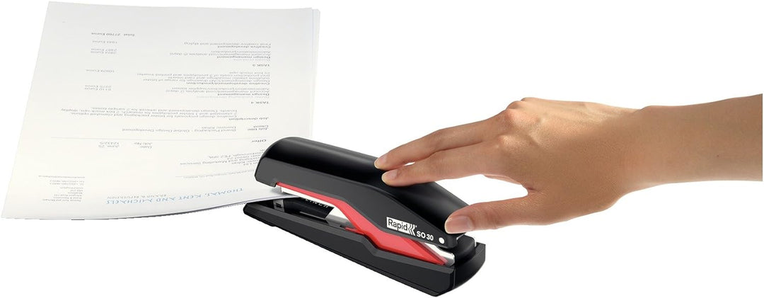 - Omnipress Super Flachheft-Tacker in schwarz/rot für bis zu 30 Blatt, Für die häufige Verwendung im Büro