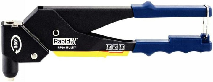 - Robuste und langlebige Nietzange mit einzigartigem Multi-System. Die RP60 Multi mit 360° drehbarem Kopf ist besonders vielseitig in der Anwendung: ideal für schwer zugängliche Bereiche. Für einfache Befestigung von Nummernschildern, Schmutzfängern