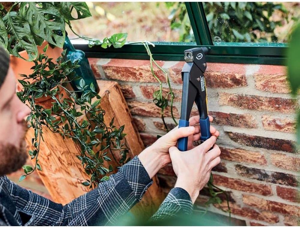 - Verarbeitet Aluminium Niete mit Durchmesser 3,2, 4,0 und 4,8 mm. Dank ihres einzigartigen Universalmundstücks kann die Nietzange RP60 Multi ohne Wechsel des Mundstücks verwendet werden