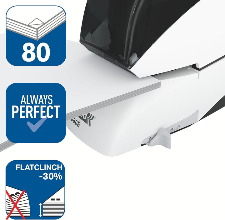 - Heftklammern: Kassette 5080e Heftklammern zum Zusammenheften von bis zu 80 Blatt (80 g/m²), 30% Platzsparen dank Flachhefttechnologie