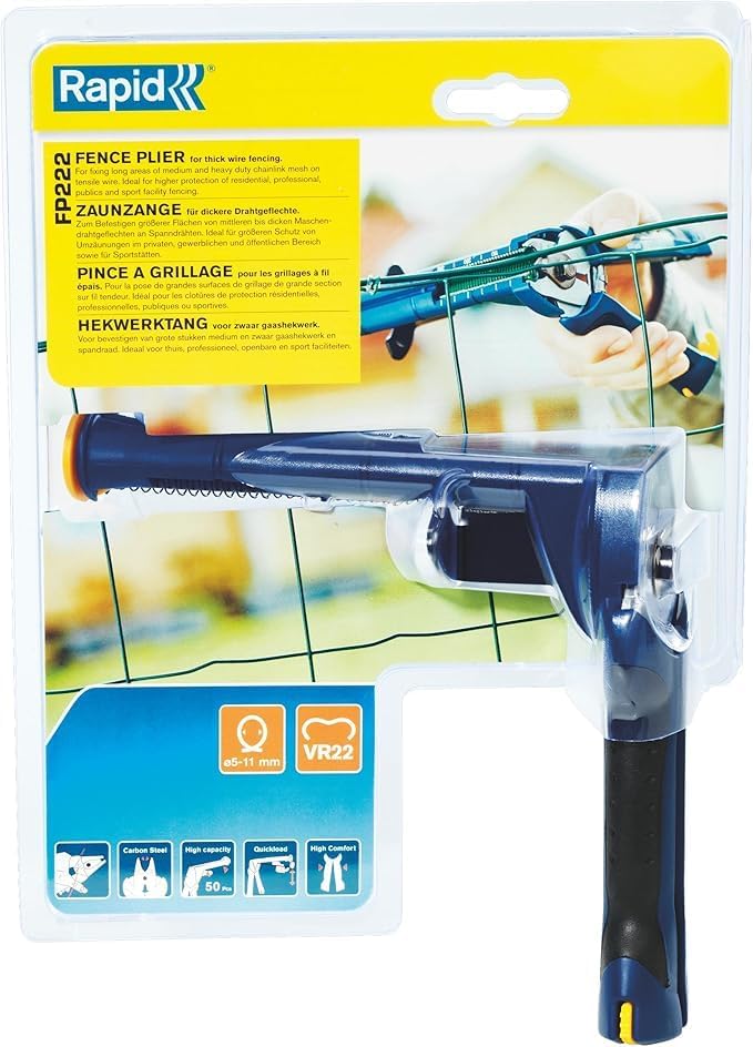- Lieferumfang: 1 Stk. Rapid Zaunzange FP222 mit Magazin, 23468100, Abmessungen BxHxT: 29,5x4,5x3,1 cm, Gerätegewicht: 384 g