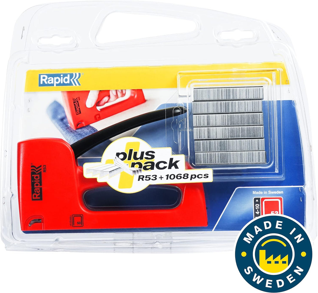 - Inhalt: 1 Heftgerät Rapid R53 in einem Koffer, inkl. Heftklammern, 20443852, Maße (B x T x H): 42 x 257 x 300 mm, Gewicht: 530 g.
