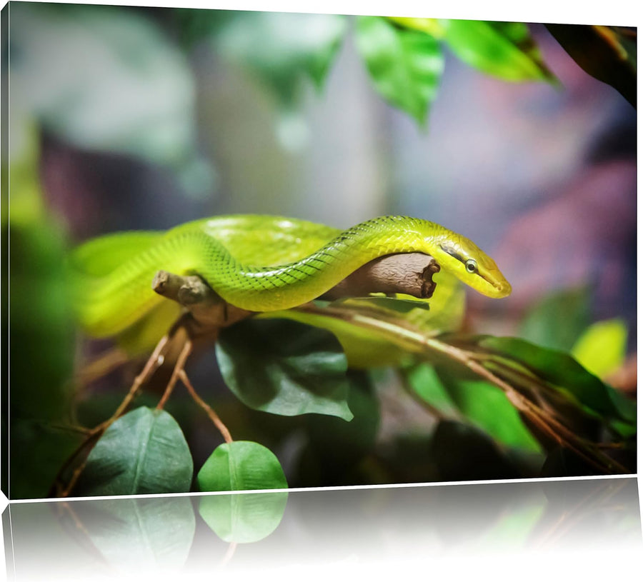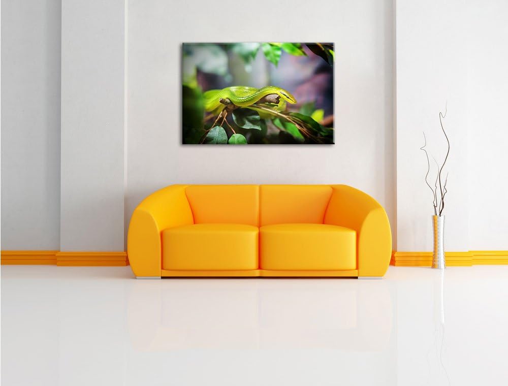 Raue grüne Schlange, Format: 100x70 auf Leinwand, XXL riesige Bilder fertig gerahmt mit Keilrahmen,